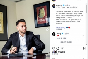 埃里克·加西亚社媒晒出续约照片,并写道:“2031年,自豪与责任。”