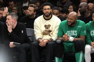 格里芬称赞塔图姆说:“有一些球星,受伤了之后就找不到人了,而他一直跟着球队、在队友身旁提供帮助,这非常了不起。”