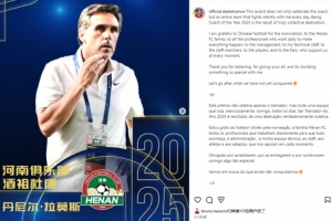 体育资讯12月13日讯 在获得2025赛季中超最佳教练殊荣后,河南队主帅拉莫斯更新社媒,感谢了团队的努力。