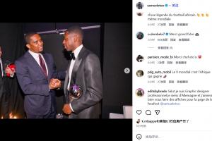 埃托奥社媒晒合照祝贺登贝莱赢得FIFA最佳,后者评论区现身感谢