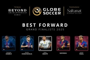 体育资讯12月18日讯 环球足球奖公布2025年年度最佳前锋五人候选名单,登贝莱、姆巴佩、亚马尔在列。