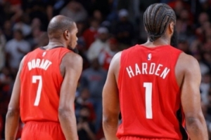 赛后快船媒体APHoops晒出哈登身穿火箭球衣、与杜兰特同框的P图,写道:“嘿@火箭。”
