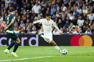据媒体统计,贝林厄姆2025年为皇马打进13球,队内仅少于姆巴佩。