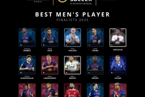 环足奖2025年最佳男足球员候选:姆巴佩、哈兰德、登贝莱领衔