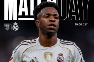 皇马官方社媒晒出了为此役制作的海报,维尼修斯单人出镜,配文:“全力以赴争取三分!已为圣马梅斯之战做好准备!”
