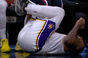 GIF-斯玛特投底角三分落地踩到科比·桑德斯,后者被吹一级恶意犯规!