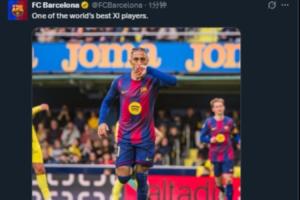 本场比赛后,巴萨官方社媒账号晒出了拉菲尼亚的赛场照,并配文:“世界上最好的11个球员之一。”