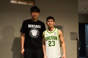 赛后,杨瀚森在个人微博上晒出了两人的合影,并在旁边写道:“Up。”