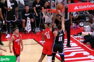 GIF-小贾巴里大帽拉文被吹犯规,火箭挑战成功是好帽
