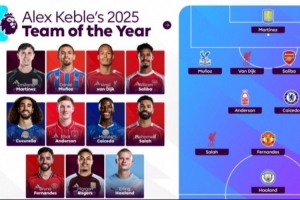 体育资讯1月1日讯 足球作家Alex Keble评2025年英超最佳阵,中卫范戴克+萨利巴,B费、哈兰德、萨拉赫、凯塞多在列。