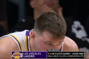 本赛季出现关键时刻(最后5分钟分差5分以内)的比赛,湖人此前11胜0负,今天再度进入关键时刻。