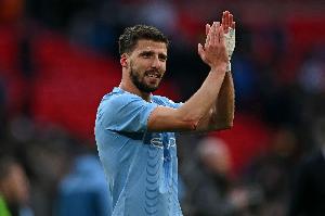 当有记者问及鲁本·迪亚斯的伤情时,瓜迪奥拉表示:“腿筋受伤,(他将缺席)4-6周。”