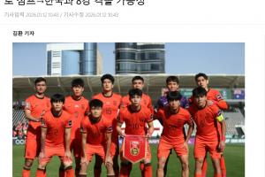 韩媒的文章标题为《“韩国队0-2输给这支中国队,吓坏了吗?”中国的黄金一代确实很可怕……他们1-0击败澳大利亚,跃居第一,可能在1/4决赛遭遇韩国队》。