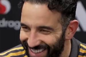 阿莫林说没有进攻球员可换,记者提醒梅努后他笑出声继续解释