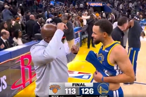 GIF-迈克·布朗赛后和追梦、库里拥抱示意