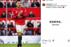 卡塞米罗社媒写道:“梦剧场上演了一场不可思议的德比!!加油,红魔!🔴”