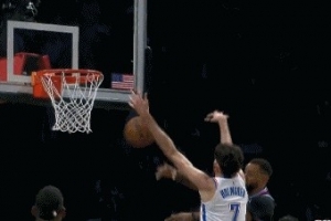 GIF-鲍威尔绕掩护突破上篮被霍姆格伦拦网式封盖出界