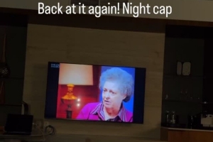 詹姆斯晒出他在酒店房间内观看纪录片剧集《美国法医档案》的动态:“再次观看!睡前放松。”