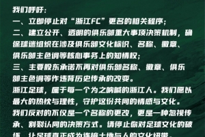 关于坚决反对“浙江FC”更名的联合声明