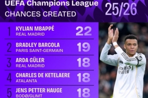 上一篇: 阿斯:姆巴佩冲击C罗单赛季欧冠17球,以及劳尔的欧冠71球纪录