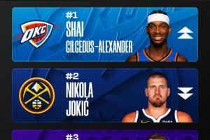 上期榜单:亚历山大反超约基奇重回第一 贾马尔·穆雷杀入前十