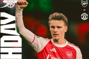 体育资讯1月25日讯 本轮英超迎来焦点战阿森纳对阵曼联,阿森纳官推也晒出海报为本场比赛预热,海报中厄德高单人出镜。