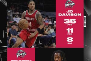 两个30+都没赢!雨姐戴维森G联盟轰下35+11+8+3+3 牛顿砍30+6+4+4