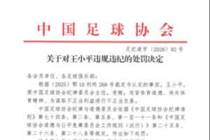 昔日签字人上罚单!足协官方:王小平受贿,终身禁足!