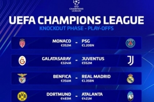 体育资讯1月30日讯 欧冠淘汰赛附加赛对阵已经出炉,《转会市场》也列出了各队的德转身价情况。皇马和巴黎均超过10亿欧元,博德闪耀和卡拉巴赫均未破亿。