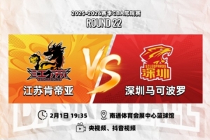2月1日19:35,2025-26赛季CBA常规赛第二十二轮,江苏肯帝亚将迎来第一阶段最后一场主场比赛,迎战深圳马可波罗。