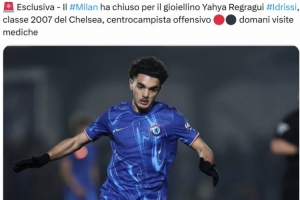 体育资讯2月1日讯 据记者Luca Maninetti报道,AC米兰签下切尔西18岁攻击型中场亚哈·雷格拉吉·伊德里西,明日将进行体检。