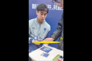 体育资讯2月1日讯 据记者程文莉消息,深圳新鹏城球员戴伟浚昨日出席活动,满足球迷签名合影的要求。