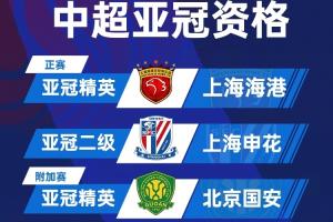 直播吧:中超罚分不影响亚冠资格,海港国安申花3队将出战亚冠