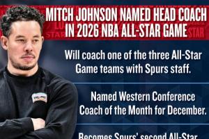 米奇今夏刚刚被马刺转为正式主帅,这是米奇执教生涯首次担任全明星主帅,他也成为马刺队史第二位全明星主帅。