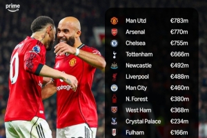 体育资讯2月3日讯 外媒Prime Video Sport根据德转数据列出了英超俱乐部近5个赛季的净支出,曼联、阿森纳、切尔西位列前三,利物浦和曼城排名六、七,布莱顿则是唯一有净收入的球队。