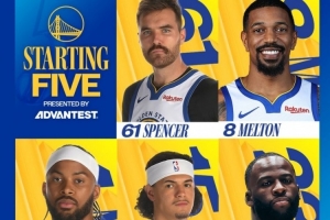 勇士首发:斯潘塞、梅尔顿、穆迪、桑托斯、追梦。