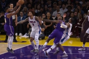 GIF-马克西对詹姆斯犯规 76人挑战失败