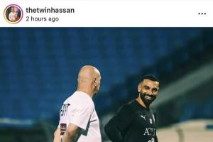 哈桑在社媒晒出自己与萨拉赫的合照,并配文写道:“永远代表着决心与力量”。