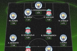 体育资讯2月8日讯 本轮英超将迎来焦点战曼城对阵利物浦,数据网站Whoscored也盘点了两队球员本赛季英超场均评分最高阵,具体如下: