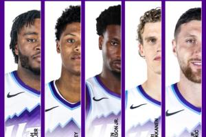 此役,爵士摆出了三塔阵容,让马尔卡宁(2米16)、努尔基奇(2米11)和新援小贾伦·杰克逊(2米08,JJJ)搭档先发,另外两人分别是以赛亚·科利尔和埃斯·贝利。