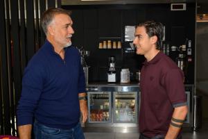 罗马官方社媒发布一段视频,迪巴拉见到巴蒂后与其拥抱,迪巴拉调侃:“我本可以给几个助攻的”