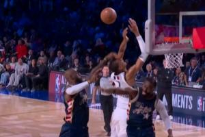 GIF-詹姆斯和布朗合力防守文班亚马造成犯规~!