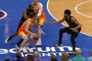 这个球裁判解释认为,哈登在与卡尔克布伦纳发生接触前,脚已经绊到了克尼佩尔,所以挑战失败