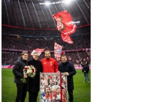 拜仁官推也晒出凯恩与球队高层的合照,配文写道:“祝贺凯恩达成生涯500粒进球里程碑,拜仁大家庭永远爱你!”