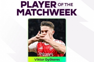 在本轮最佳评选中,约克雷斯共获35%的投票。赛季至今,这名球员在英超出战26场比赛,打进10球。