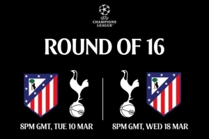 体育资讯2月27日讯 欧冠1/8决赛,马竞对阵热刺,两回合比赛时间已经确定。