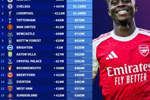 体育资讯12月10日讯 德转更新了英超球员身价,并盘点了目前英超球队身价榜,具体如下:
