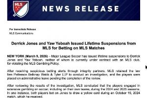 体育资讯03月10日讯 美职联官方3月9日宣布,对曾效力美职联的两名球员德里克·琼斯和叶博亚处以终身禁赛,原因是他们曾参与涉及美职联比赛的赌博活动。其中,叶博亚正是中超青岛海牛队今年冬窗引进的新援。